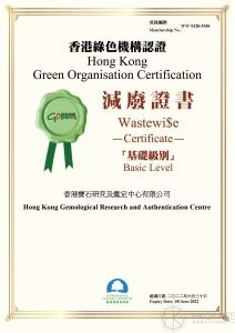 HKGRACE has been continually awarded a “Wastewi$e Certificate” of the Hong Kong Green Organisation Certification (HKGOC) in 2021